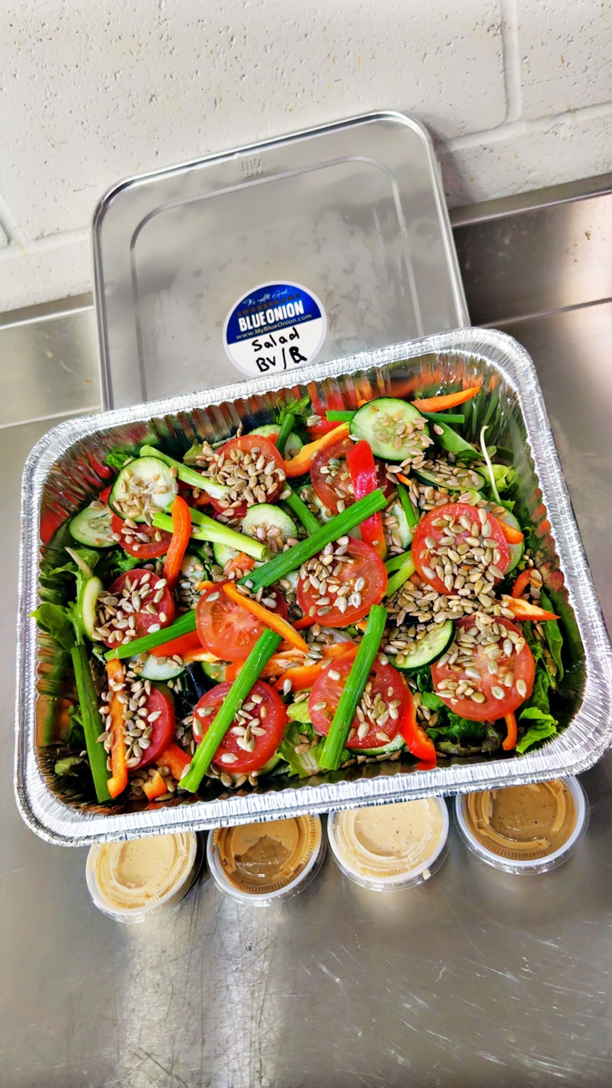 We specialize in last-minute catering, but 24 hours in advance is always appreciated! For same-day catering, give your my Blue Onion branch a call!